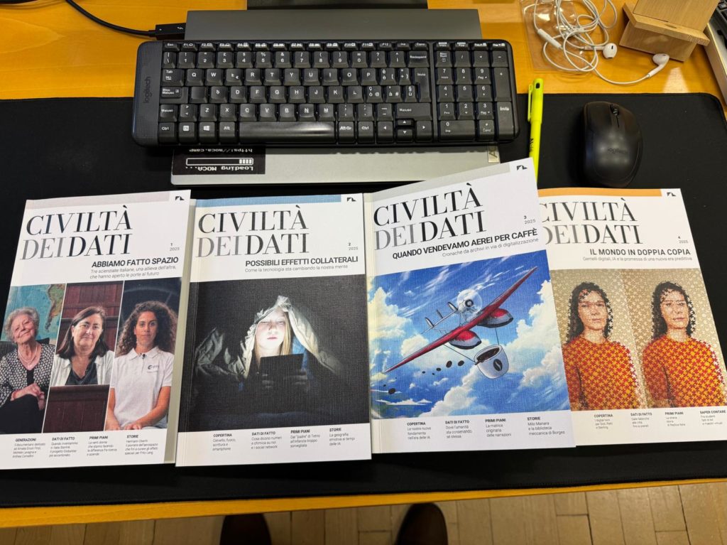 Civiltà dei dati è una bella rivista. Prosecuzione ideale della Civiltà delle macchine che dal 1953 al 1979 ha contribuito a modellare la cultura dell’innovazione nel nostro paese, aspira oggi come allora a intrecciare il dialogo tra scienza, tecnologica e sperimentazione letteraria e artistica con un focus specifico sull’ontologia del dato. Proprio quel dato che consente scelte e previsioni, il dato che ci anticipa e rappresenta nel mondo digitale e che è il carburante delle nuove macchine IA è il centro e al centro della rivista. Diretta da Jaime D’Alessandro, storica penna tecnologica dell’Espresso e di Repubblica, è un contenitore di alcune delle migliori firme del pensiero contemporaneo in lingua italiana, Floridi, Taddeo, Benanti, Aresu, e del giornalismo tech come Iacona, Aluffi, Sterling e altri. I primi quattro numeri della rivista, frutto di un progetto della Fondazione Leonardo, direttrice generale la giornalista Helga Cossu, sono stati dedicati a quattro grandi temi d’attualità: lo spazio, la mente, gli archivi, l’IA e i digital twins.