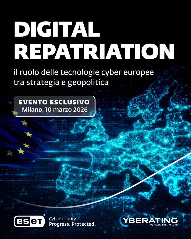 Un incontro esclusivo organizzato da ESET & Cyberating, pensato per approfondire il tema della Digital Repatriation da tre prospettive complementari: legale, di gestione del rischio e tecnologica.